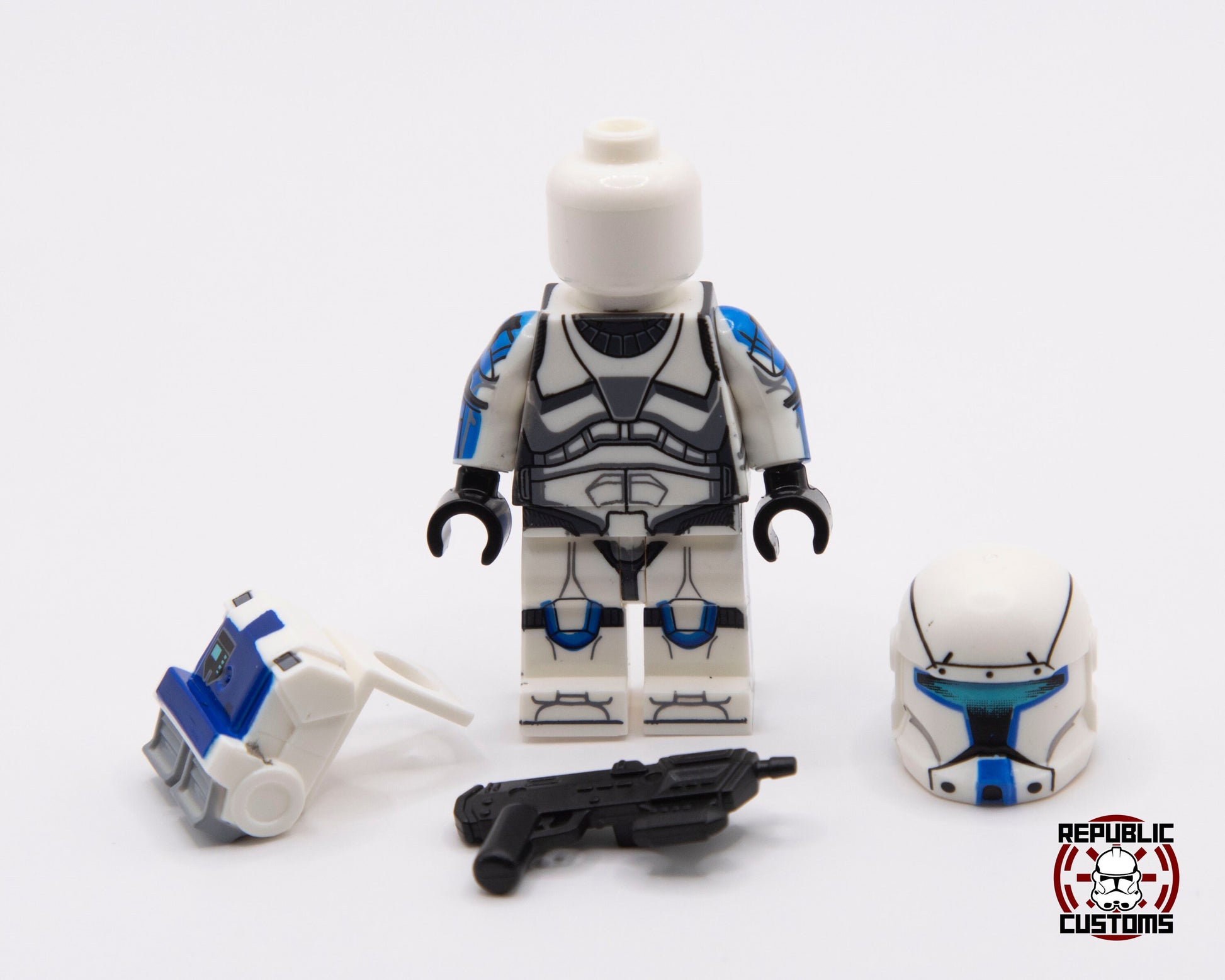 Clone Commando minifig from Anakin's 501st. Made with high-quality 360 pad printing to be as screen-accurate as possible. Comes with a commando backpack and a custom molded DC-17M blaster.