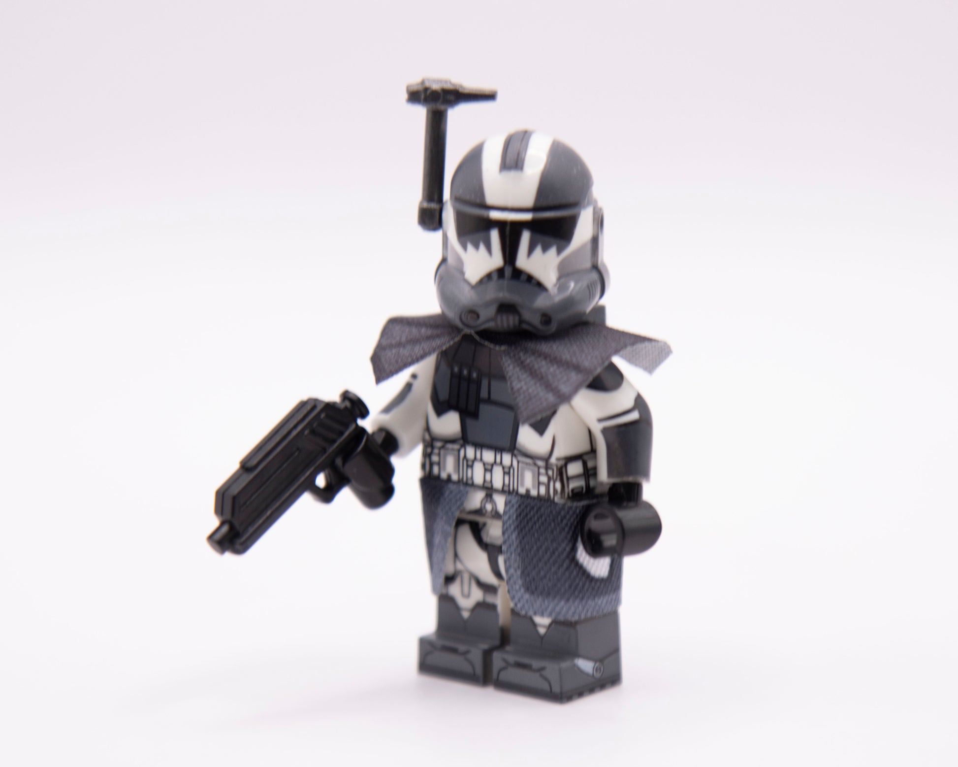 Clone ARC trooper from Plo Koon's 104th Wolfpack. Made with high-quality 360 pad printing to be as screen-accurate as possible. Comes with Wolfpack fabric kama, pauldron, helmet antenna, and a custom molded DC-17 hand blaster.